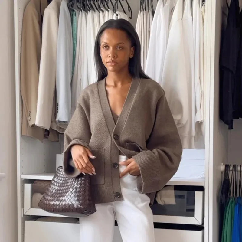 The Le Cloud Cardigan offers a refined blend of comfort and style, crafted with premium materials for a soft, lightweight feel. Its versatile design makes it an essential layering piece, ideal for transitioning between seasons while maintaining a polished look. Perfect for professionals seeking both elegance and practicality in their wardrobe.